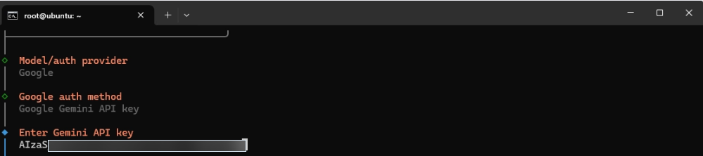 sử dụng lệnh: openclaw onboard, chọn Google và auth method là Google Gemini API key