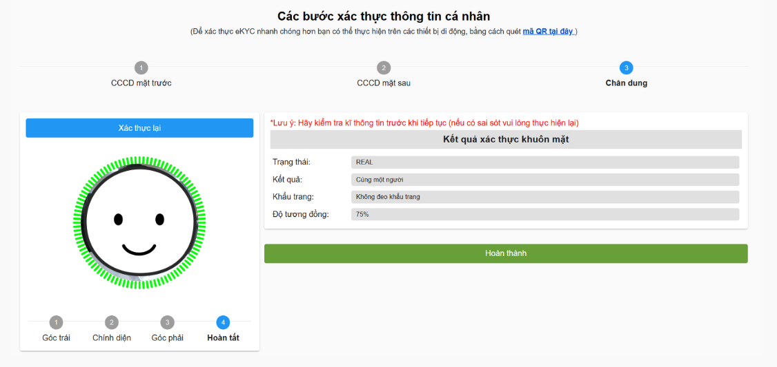Cuối cùng, nhấn “Hoàn thành” để kết thúc bước xác thực eKYC.