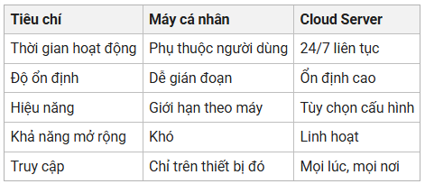 Không phải ngẫu nhiên mà cloud server dần trở thành lựa chọn phổ biến. Lý do nằm ở sự khác biệt rõ ràng trong trải nghiệm sử dụng.