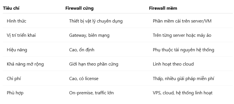 Firewall mềm đặc biệt phổ biến trong các mô hình VPS, private cloud và public cloud nhờ khả năng triển khai nhanh và linh hoạt.