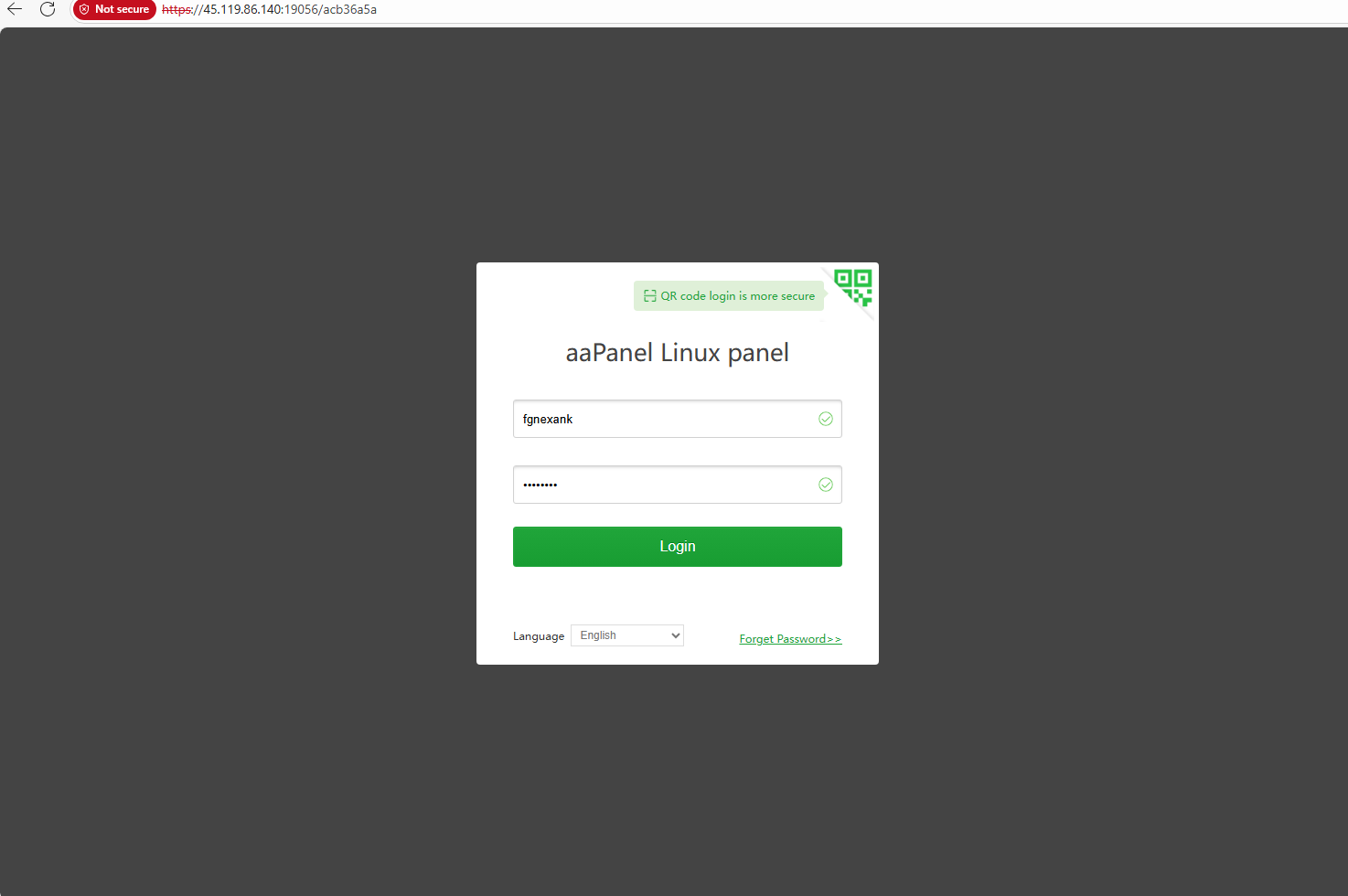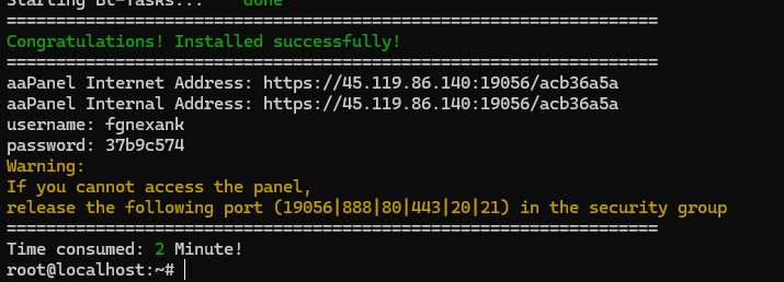 aaPanel Internal Address: https://45.119.86.140:19056/acb36a5a
