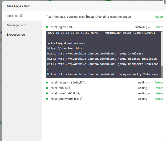 Trong quá trình bấm tải không nên tắt trình duyệt hoặc đóng tab aaPanel