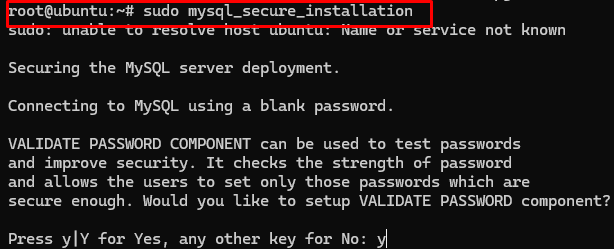 ở phần Validate Password Plugin này ta có thể chọn N để bỏ qua phần này, hoặc chọn Y để áp dụng chính sách kiểm tra độ mạnh mật khẩu mỗi khi người dùng đặt hoặc đổi mật khẩu.