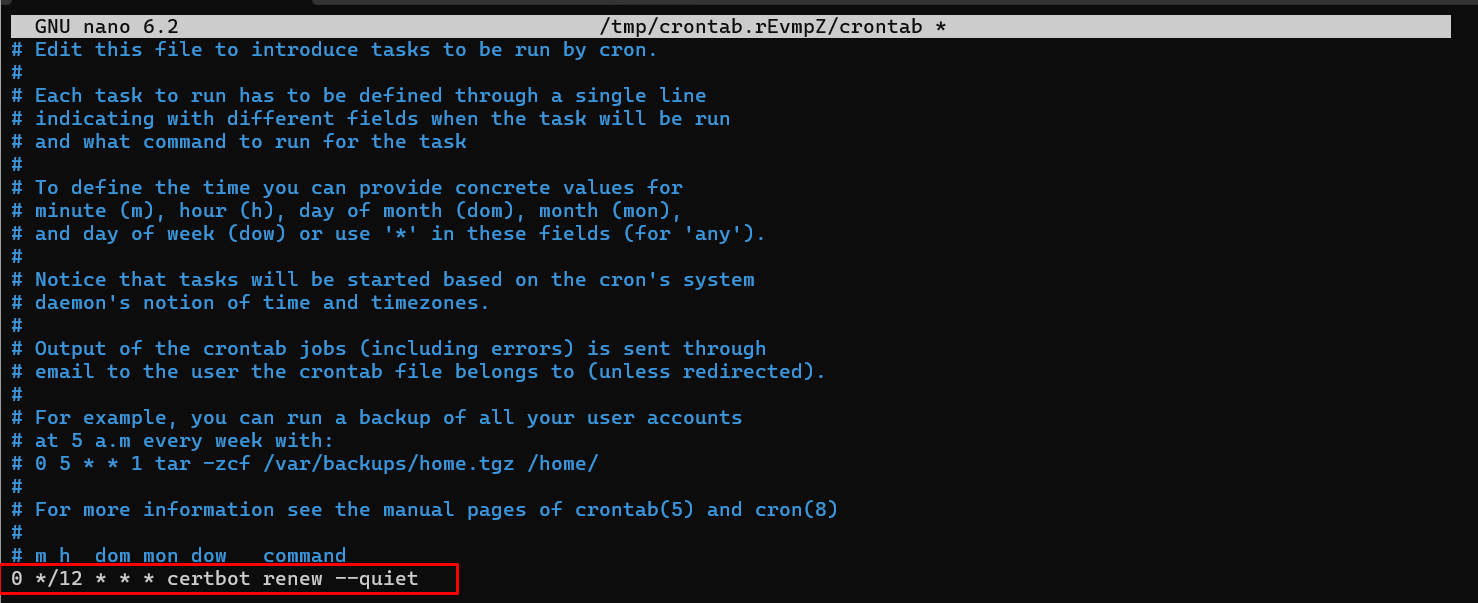 Chứng chỉ Let's Encrypt chỉ có hiệu lực trong 90 ngày, vì thế bạn có thể sử dụng crontab để tự làm mới chứng chỉ