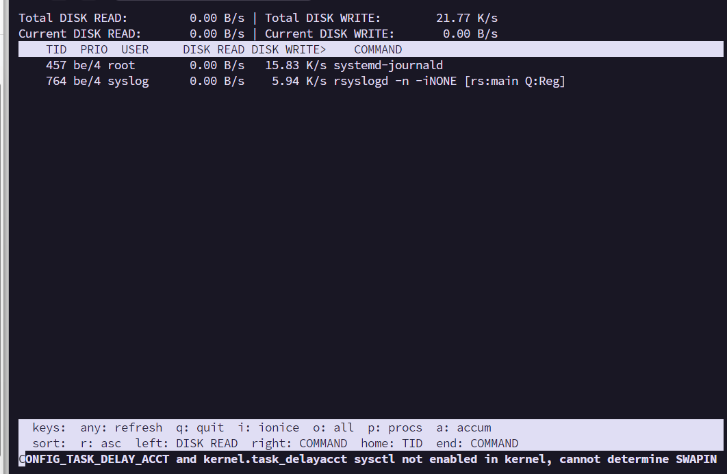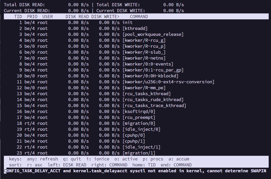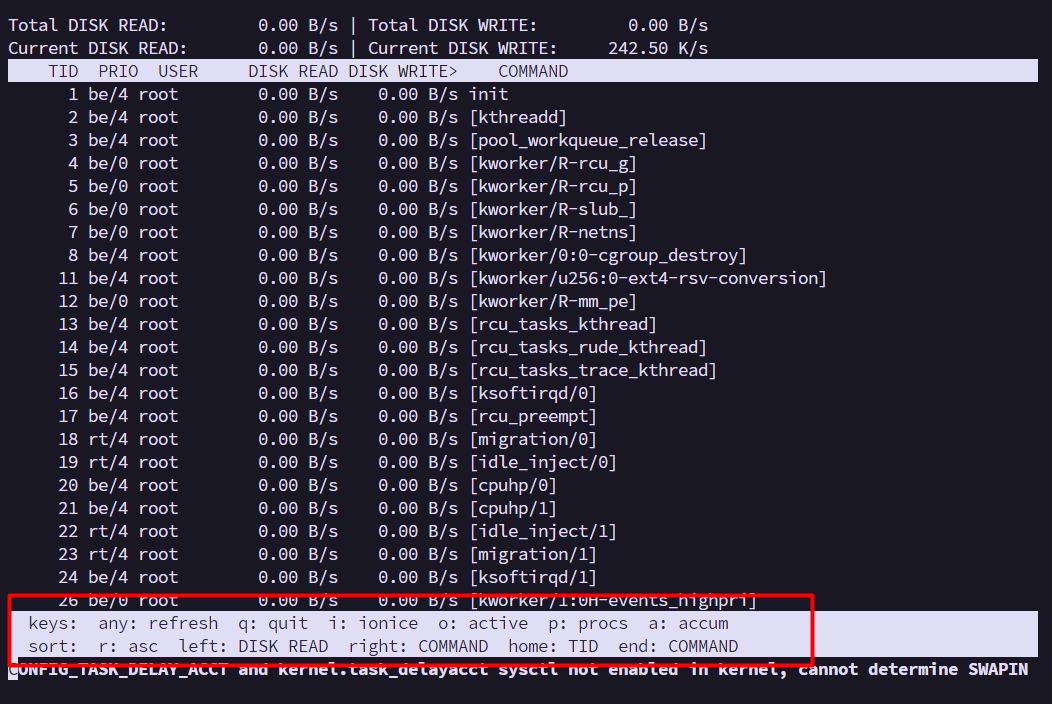 4. Cách thay đổi cấu hình và tham số hiển thị trong iotop