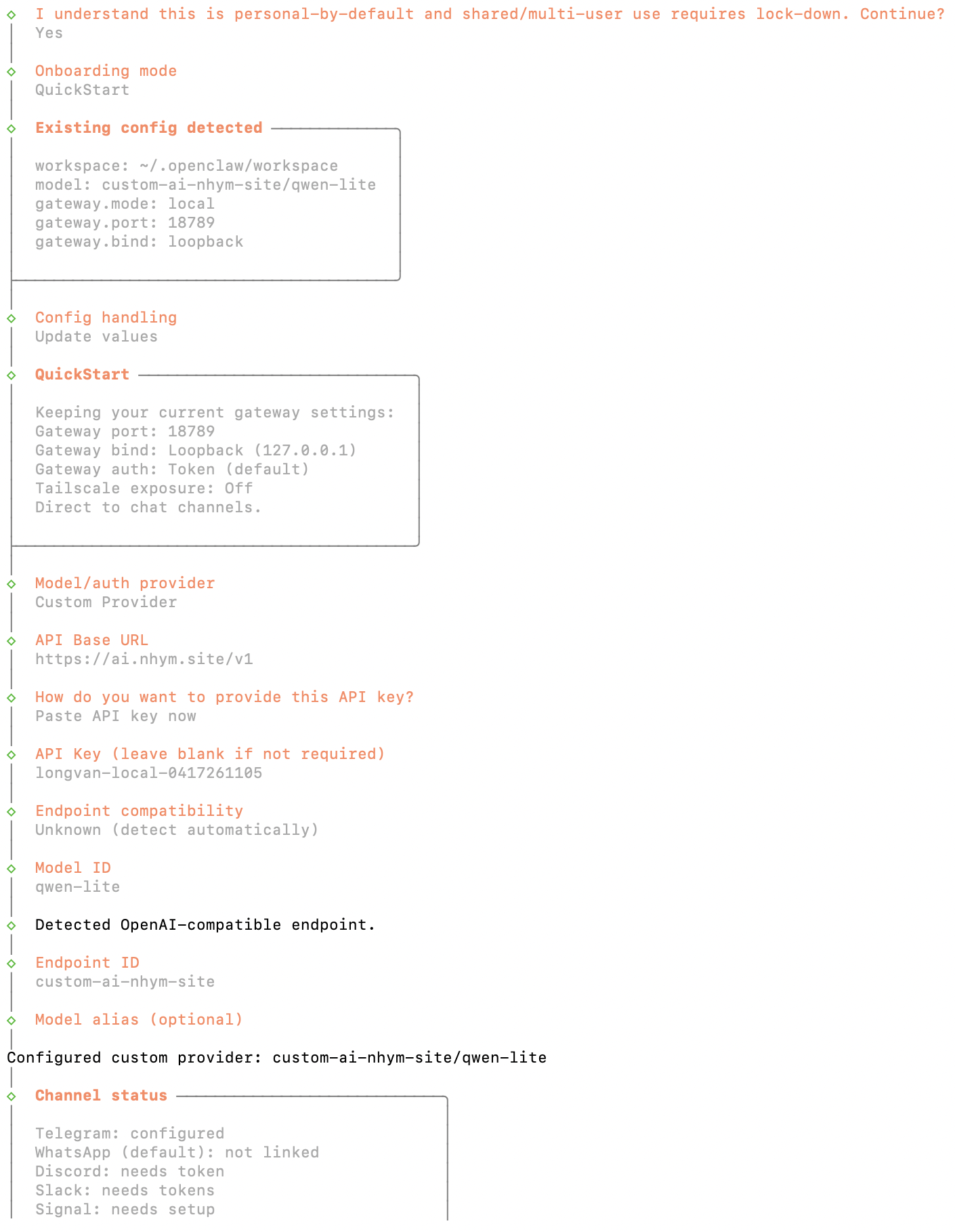Sau khi đã SSH vào server, để mở menu thiết lập hãy chạy lệnh : openclaw onboard
