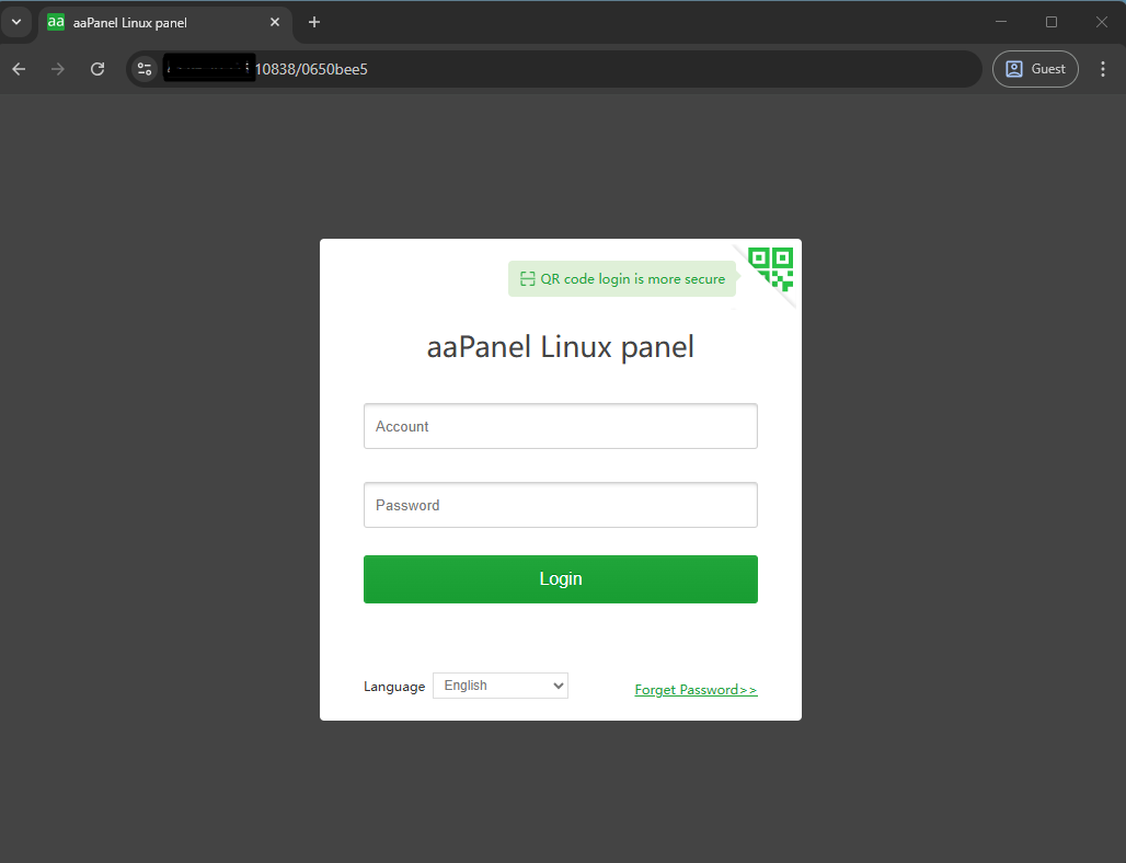 mở trình duyệt và truy cập vào panel bằng URL đăng nhập (vd: http://IP:8888)