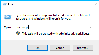 Nhấn Windows + R, gõ ncpa.cpl → Enter.