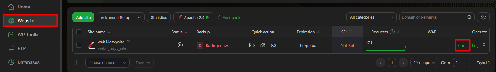 Vào mục Website Chọn website cần cài SSL nhấn config