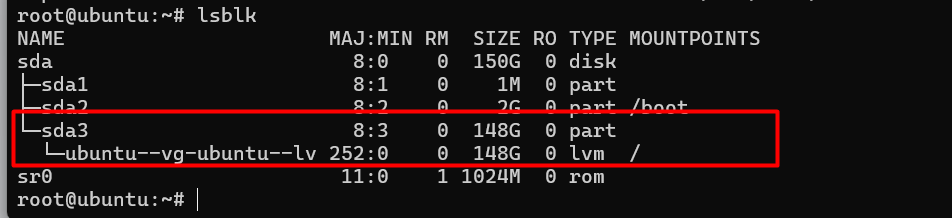 lsblk #kiểm tra ổ cứng và phân vùng