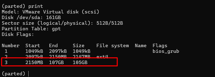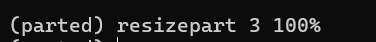 (parted) resizepart 3 100% #thực hiện mở rộng