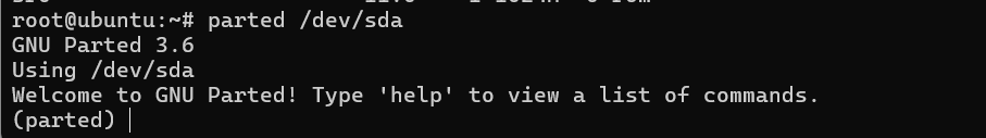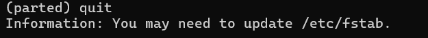 (parted) quit #thoát khỏi mode mở rộng của parted