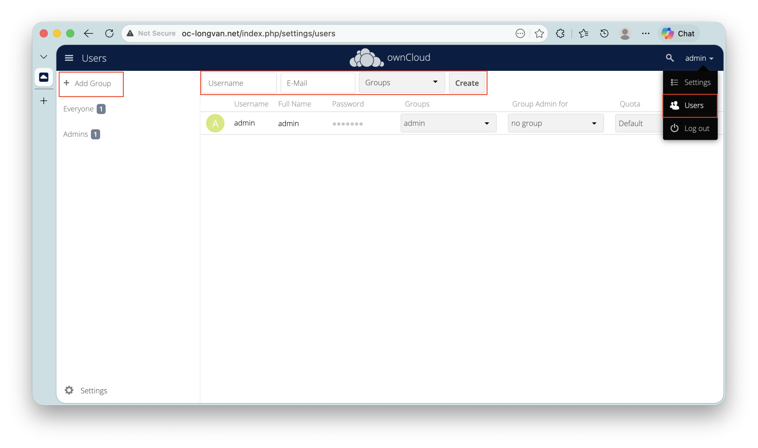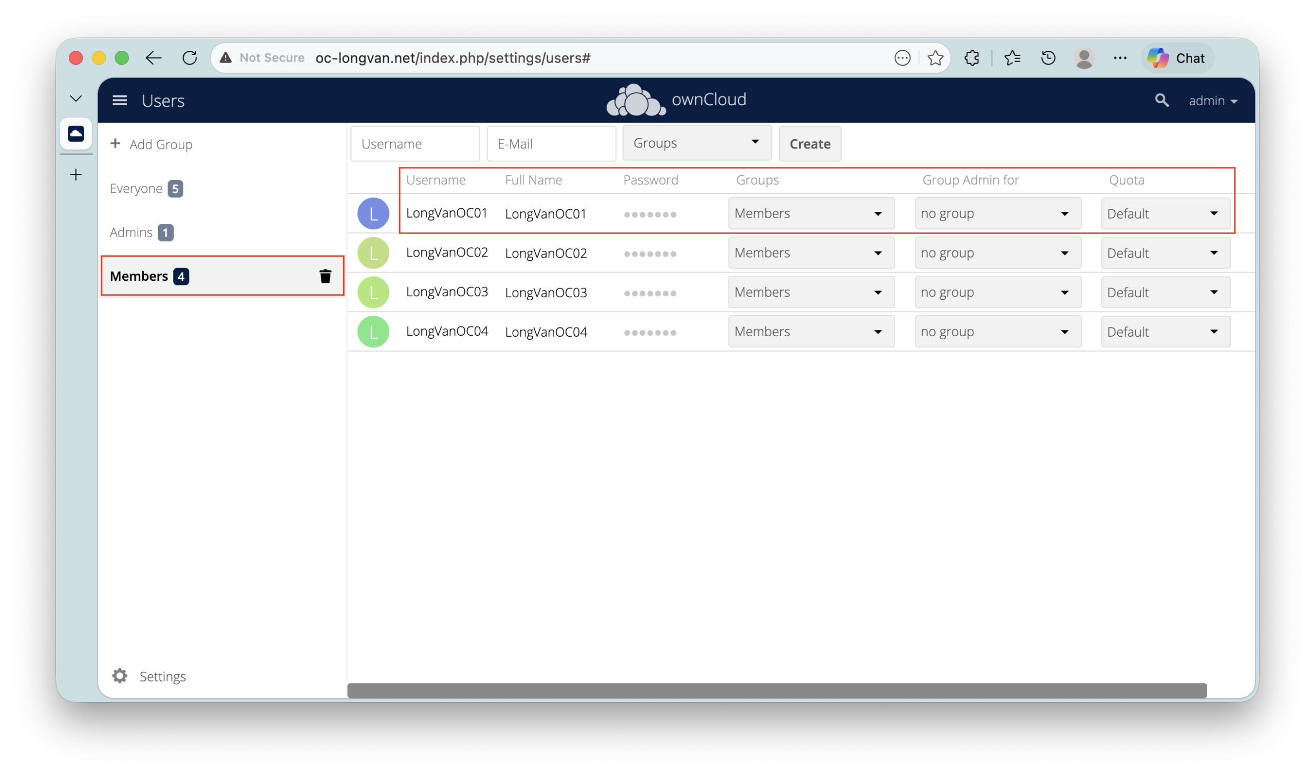 Hướng dẫn tạo người dùng, nhóm và chia sẻ thư mục trên ownCloud