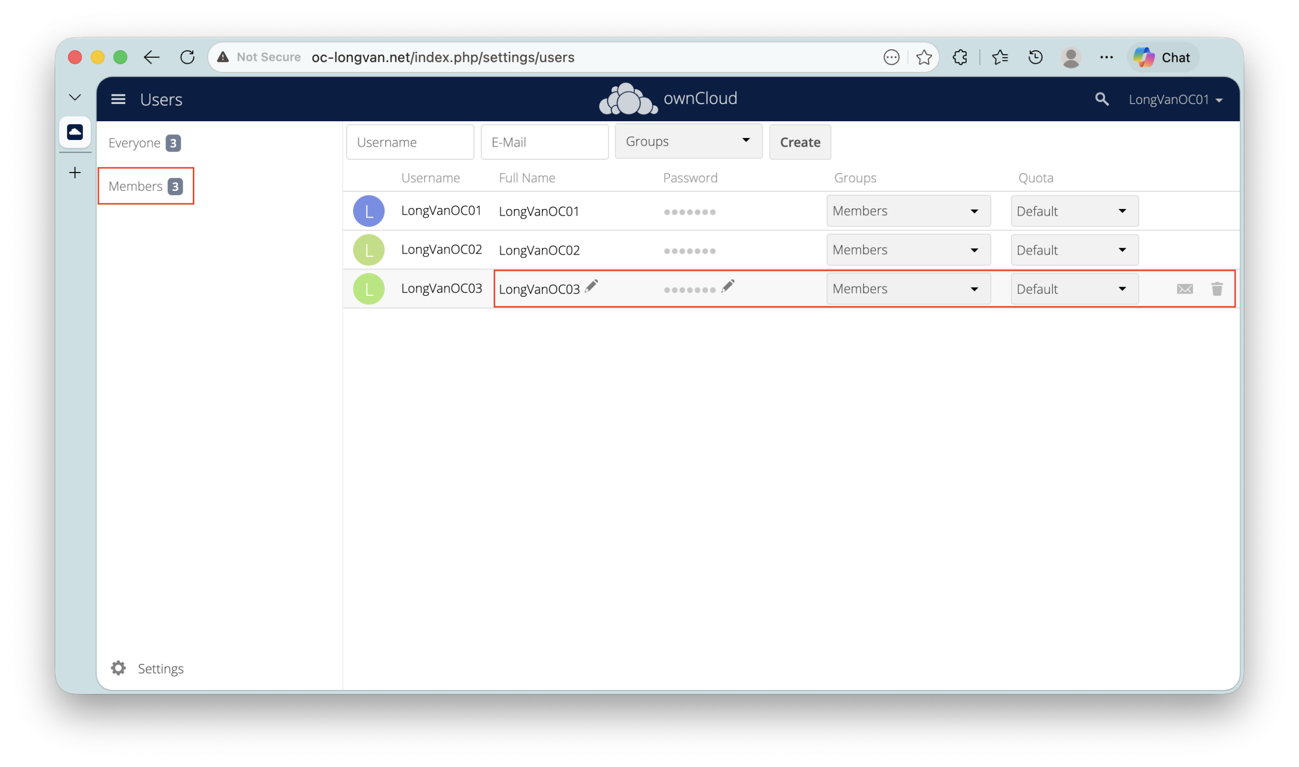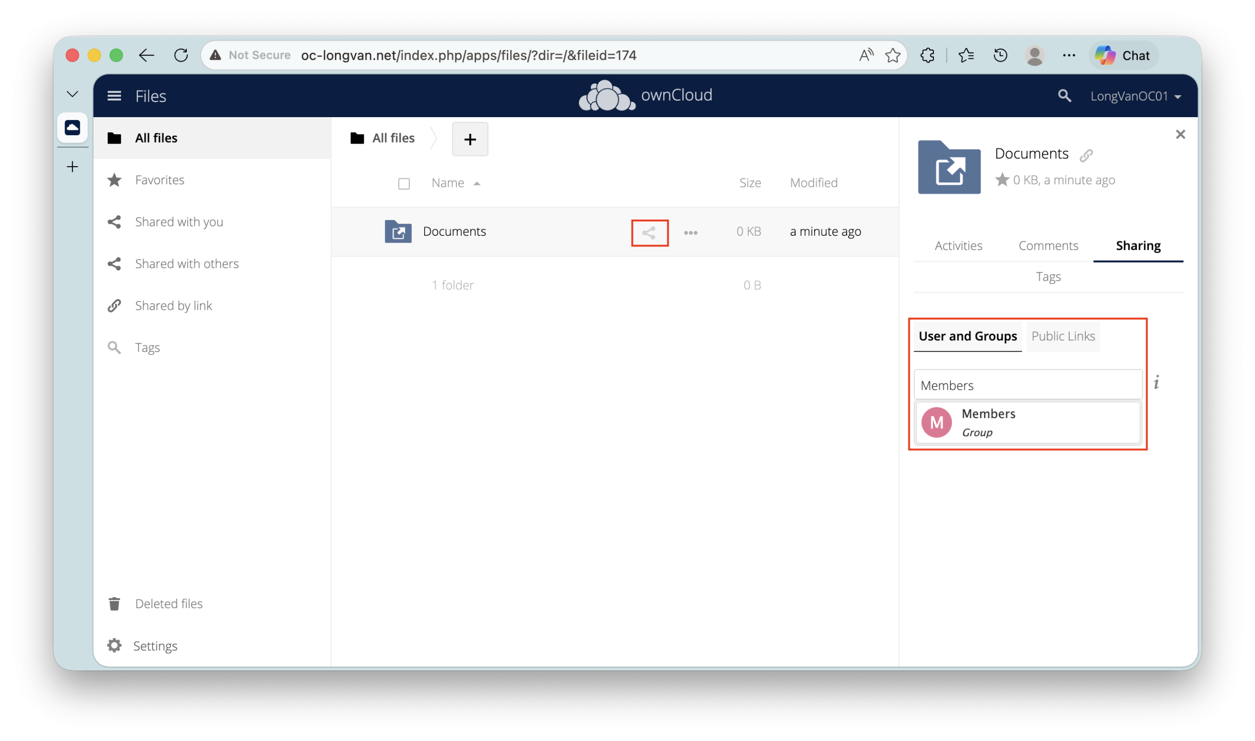 Như vậy, Long Vân đã hướng dẫn quý Khách tạo người dùng, nhóm và chia sẻ thư mục trên ownCloud. Chúc quý Khách thành công!