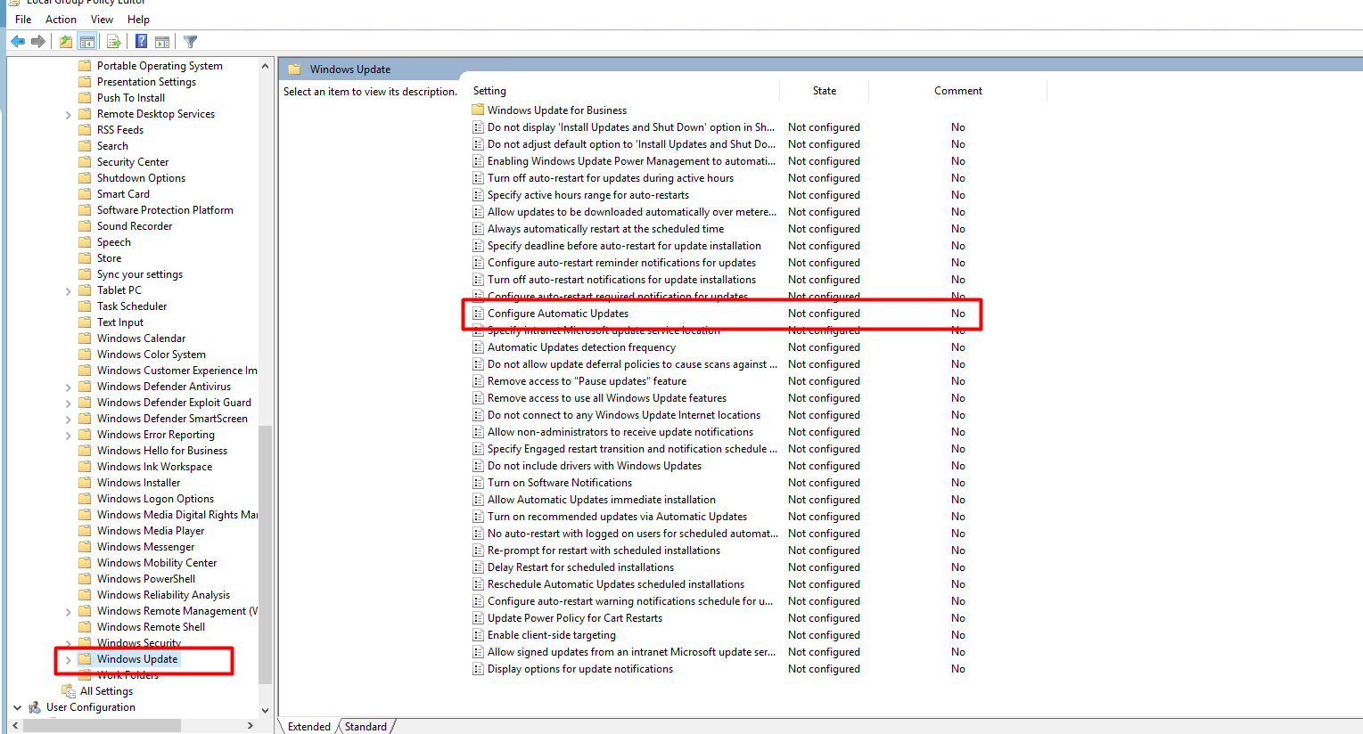 Bước 2: Đi theo đường dẫn sau: Computer Configuration → Administrative Templates → Windows Components → Windows Update