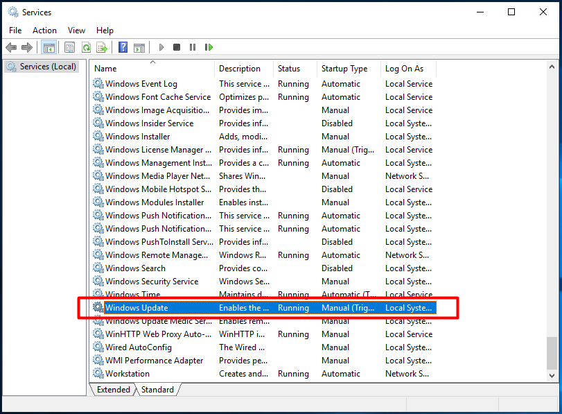 Bước 2: Trong danh sách dịch vụ, tìm “Windows Update”.
