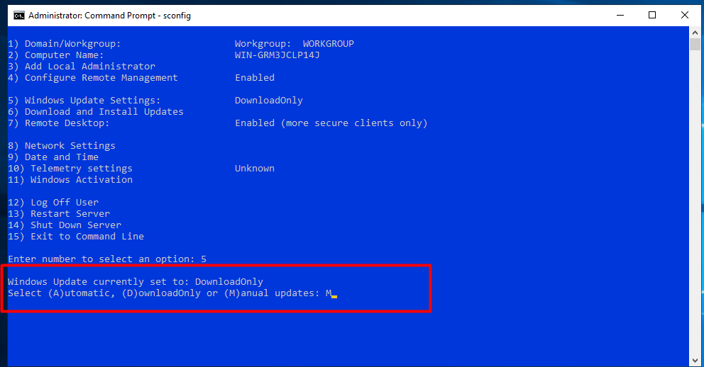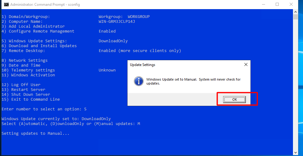 Cách 2: Tắt cập nhật bằng PowerShell (sử dụng lệnh sconfig)