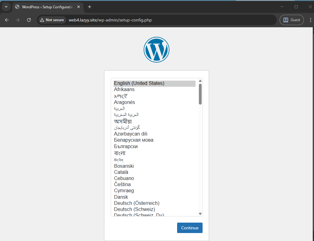 Khi triển xong thì ta truy cập vào access site được cung cấp và bắt đầu cấu hình các thông tin wordpress cần thiết.