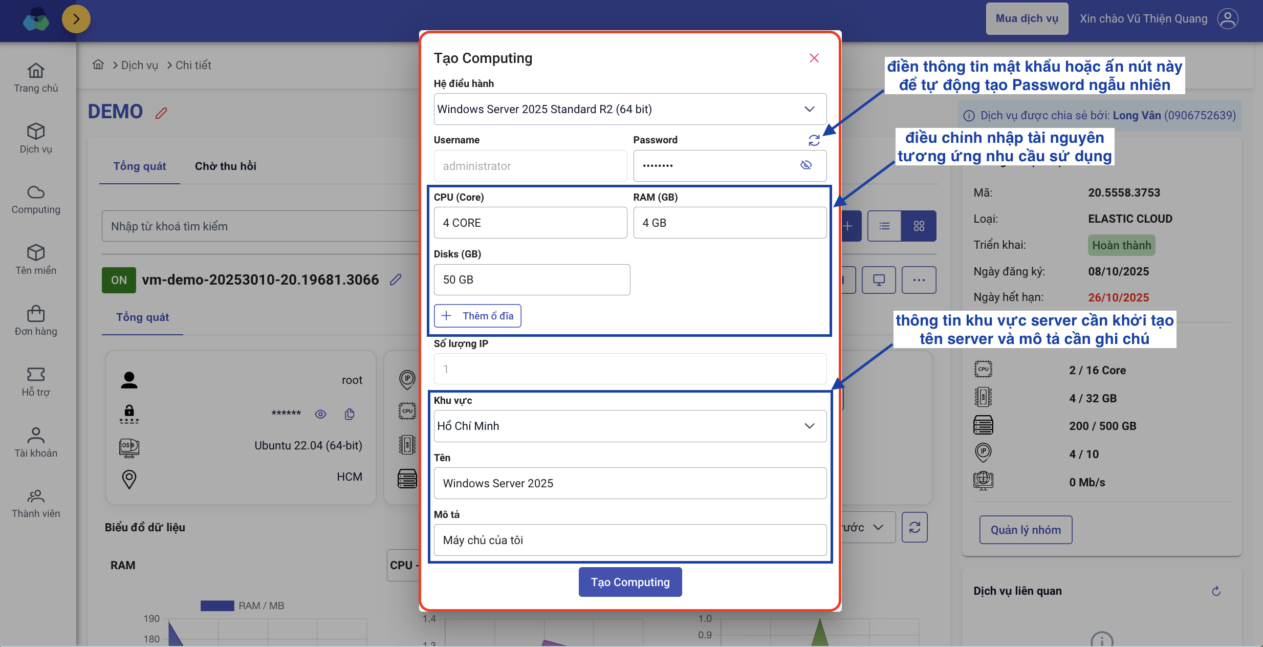 Bước 4. Cuối cùng, hãy ấn chọn Tạo Computing để hệ thống khởi tạo