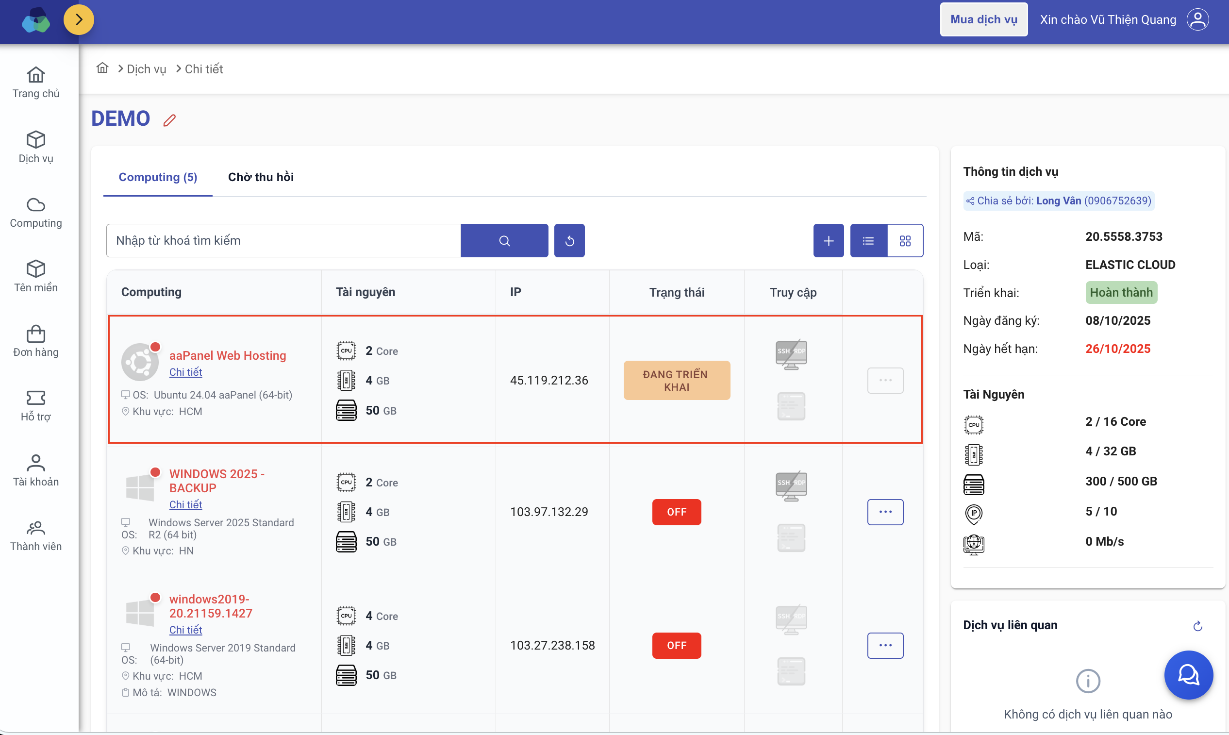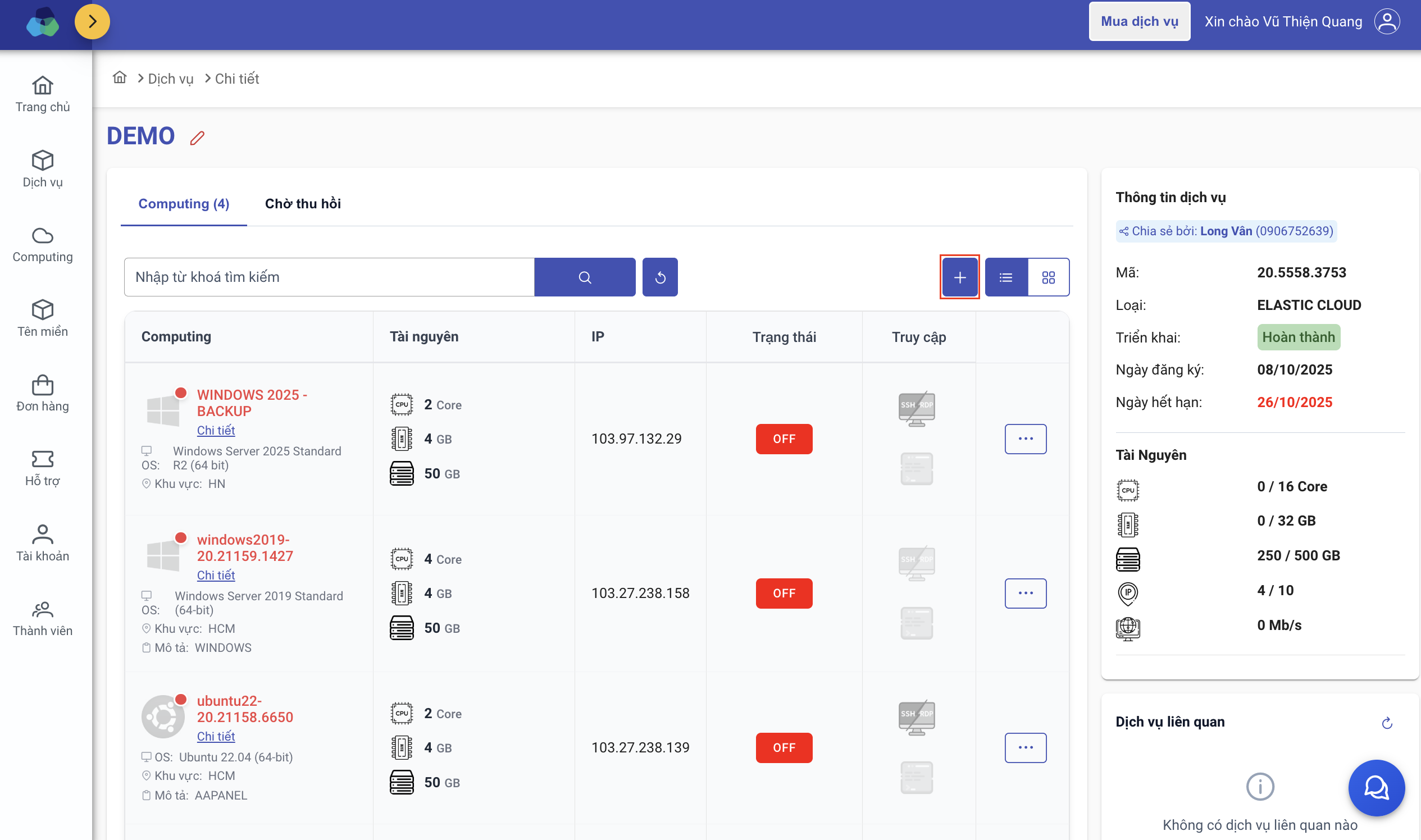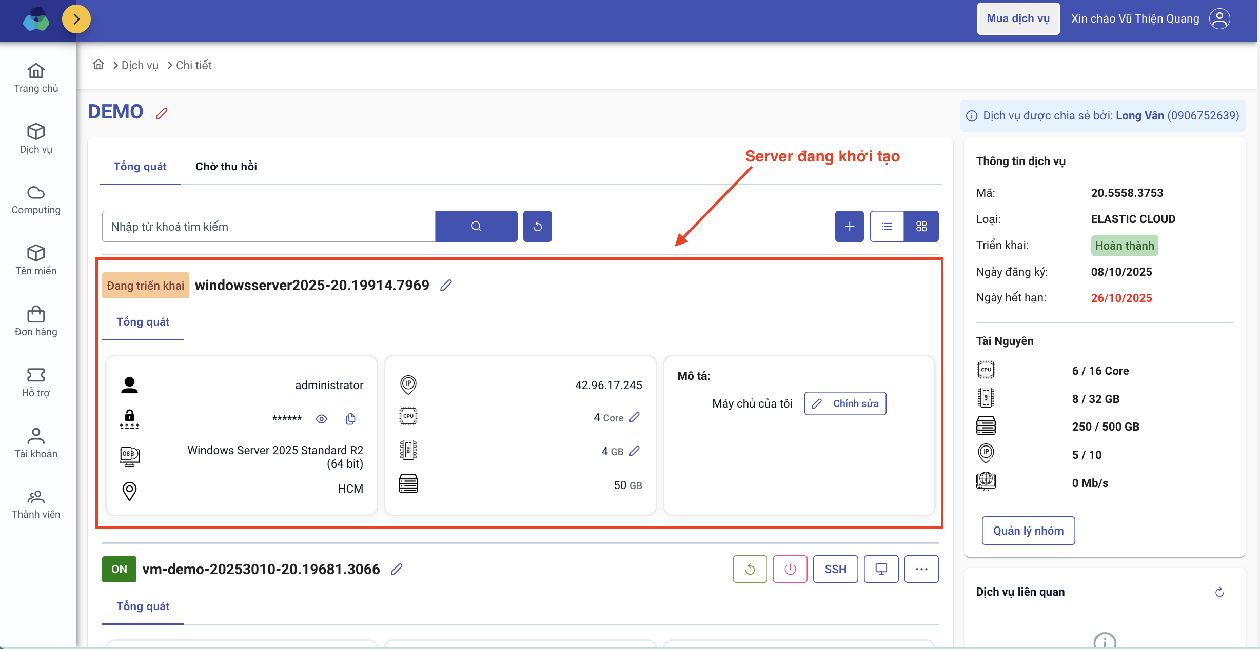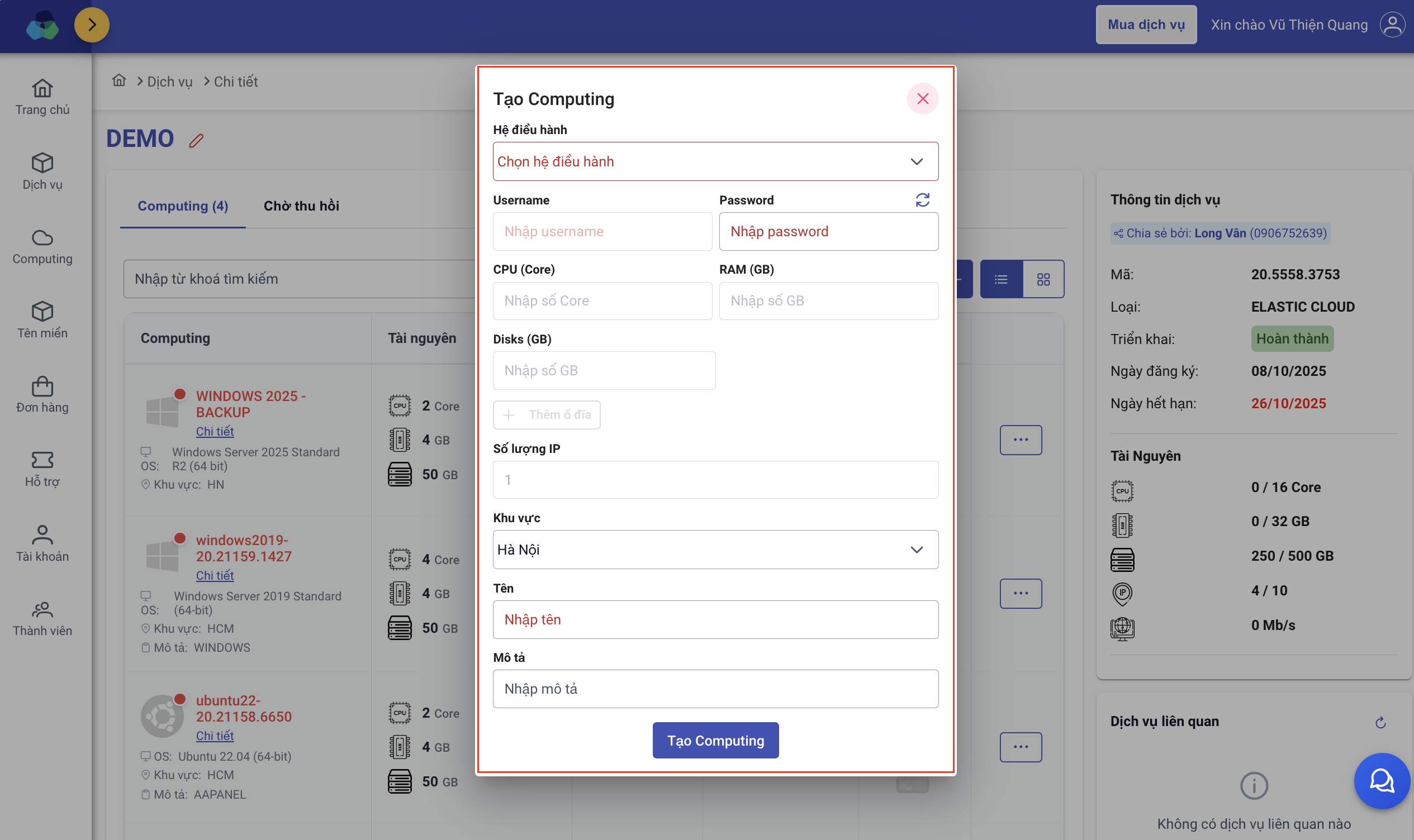 Như vậy, Long Vân đã hướng dẫn quý Khách tạo computing dịch vụ Elastic Cloud. Chúc quý Khách thành công!