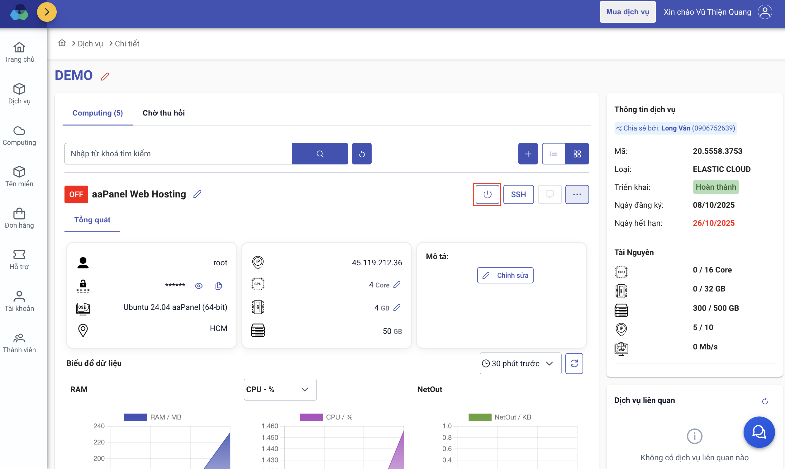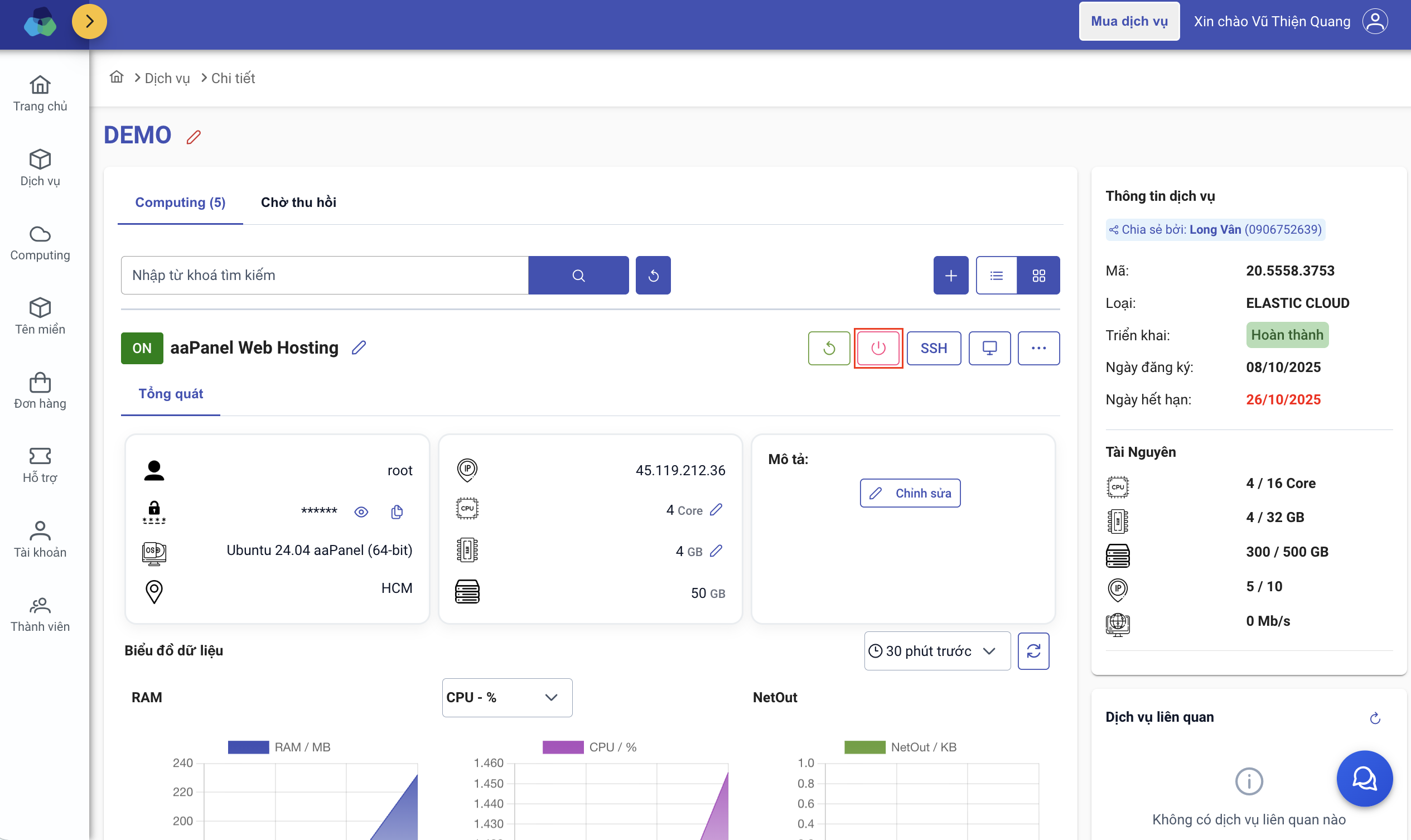 2. Thao tác Tắt/Bật computing