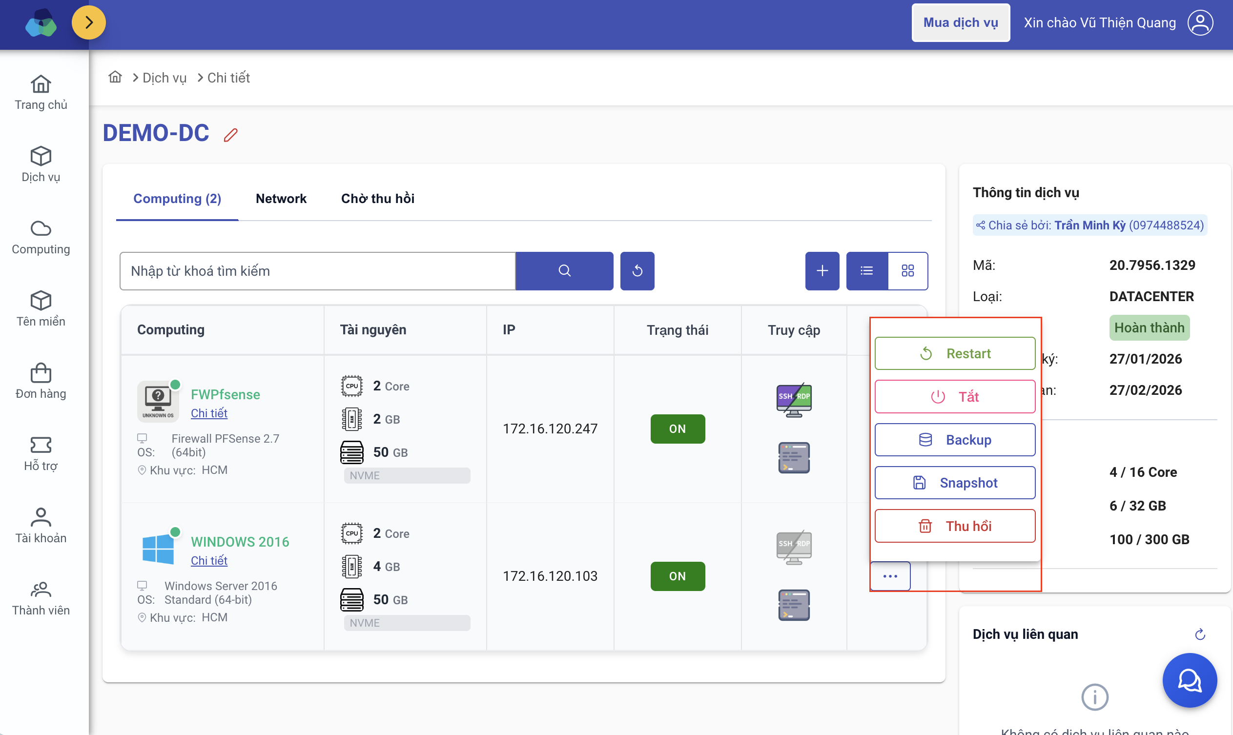 Quản lý Computing (VM) Smart Datacenter