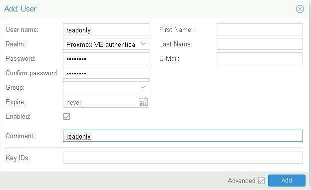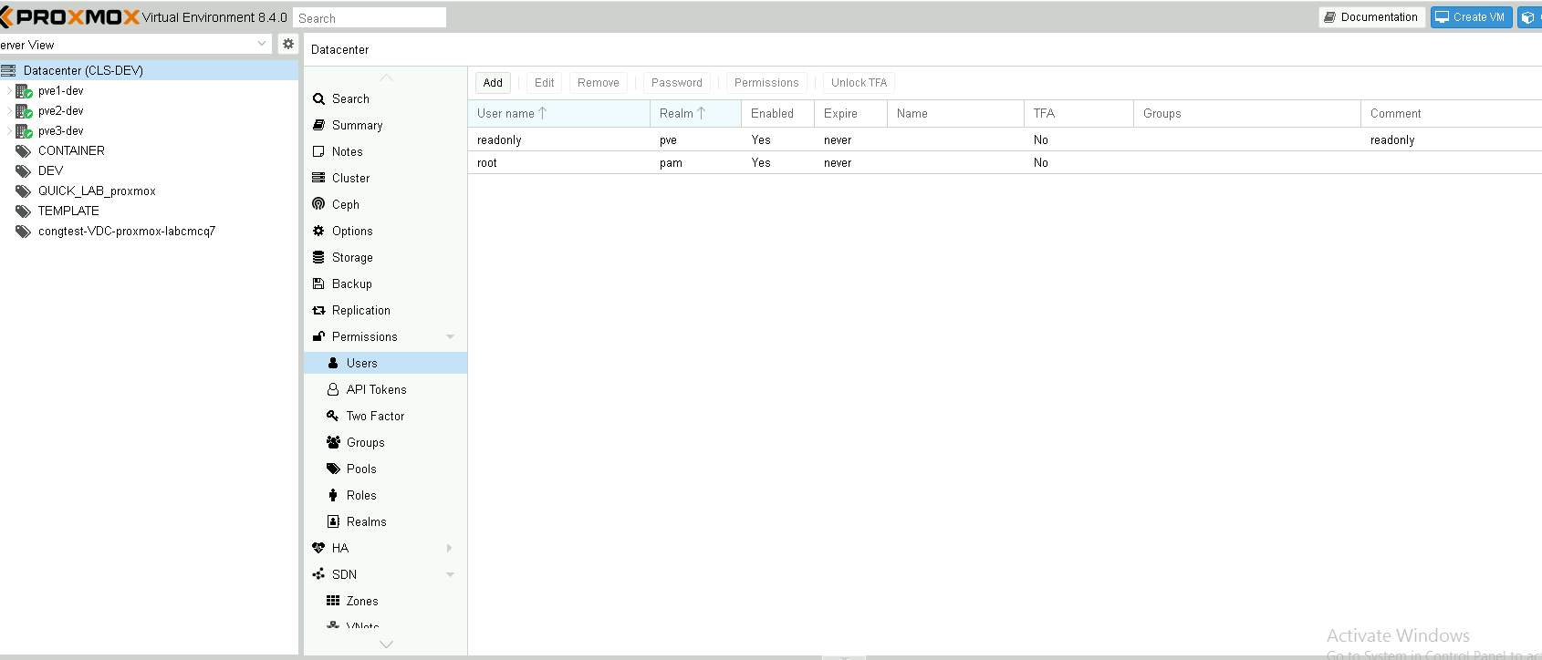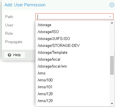 Sau khi thực hiện tạo user, ta cần gán các quyền hạn mà user đó được phép truy cập resouce của server Proxmox.