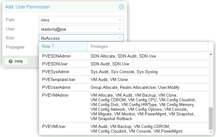 PVEVMUser: xem, backup, cấu hình CD-ROM, VM console, VM power management