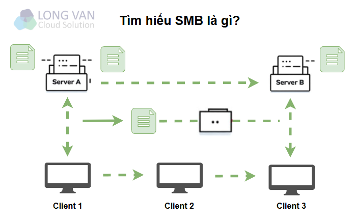 SMB (Server Message Block) là một giao thức mạng được sử dụng trong hệ điều hành Windows và DOS. Nền tảng này cung cấp cơ chế cho phép các máy khách (client) truy cập vào hệ thống file máy chủ (server) và các thiết bị input/output, chẳng hạn như máy in.