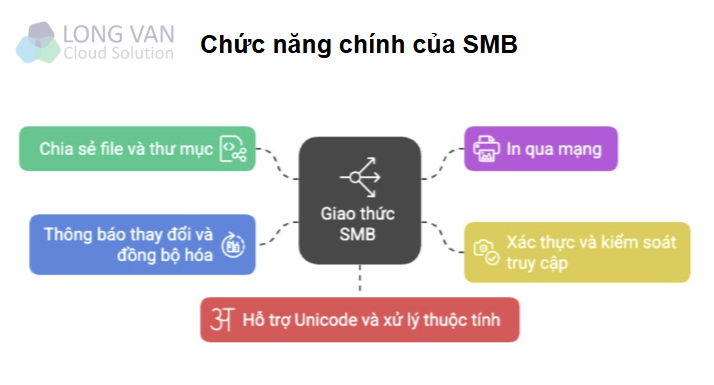 Giao thức SMB cung cấp nhiều chức năng quan trọng, giúp việc quản lý và chia sẻ tài nguyên trong mạng trở nên hiệu quả hơn.