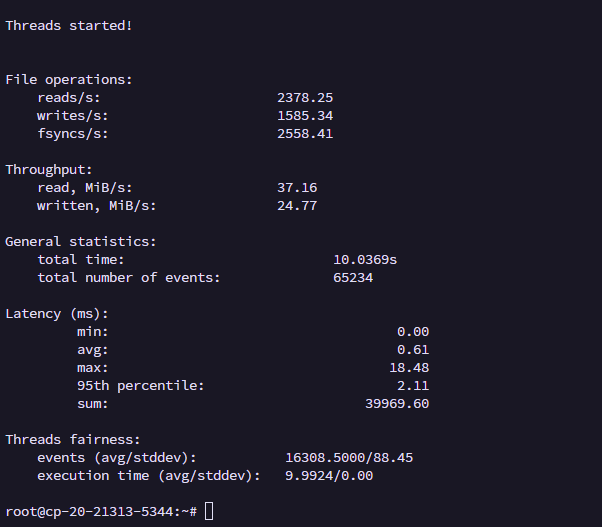 sysbench fileio --file-test-mode=rndrw --threads=4 --file-num=64 --file-total-size=3G run